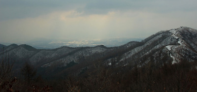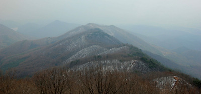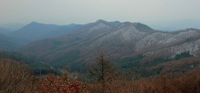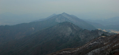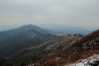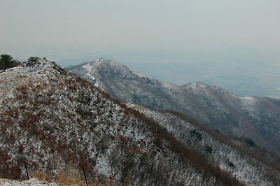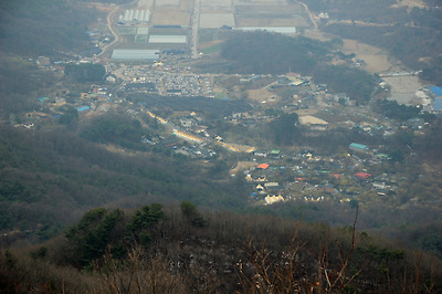 멀리 원적산이 바라보이고 옆으로 흘러내린 능선을..