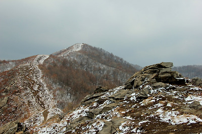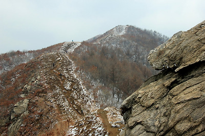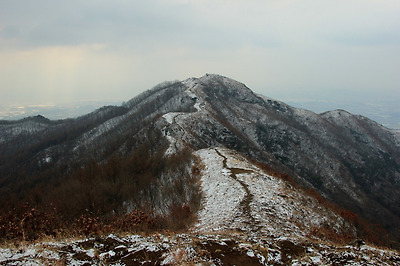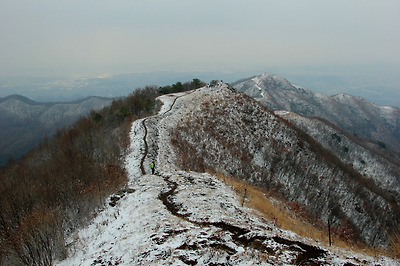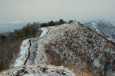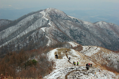 천덕봉을 오르며 뒤돌아본 원적산의 하얀능선..