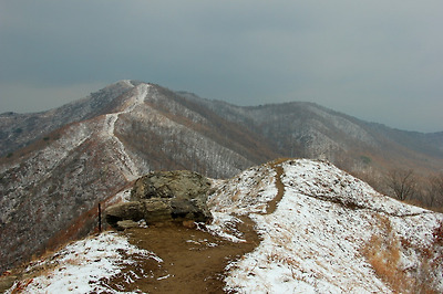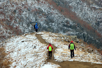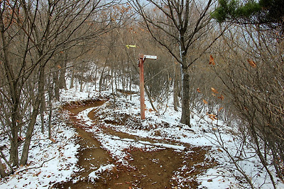 눈이 내린 등로의 풍경..
