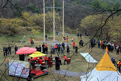 행사장을 뒤돌아와 난타공연팀의 신명나는 북소리를 듣고 산행을 마무리하기로..(11:17)