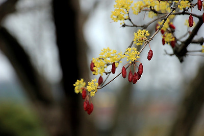 노란 산수유꽃과 빨간 열매를 담아보고..
