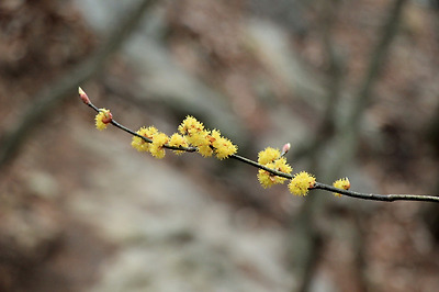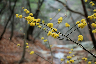 동그스럼한 노란 꽃을 피운 생강나무꽃..
