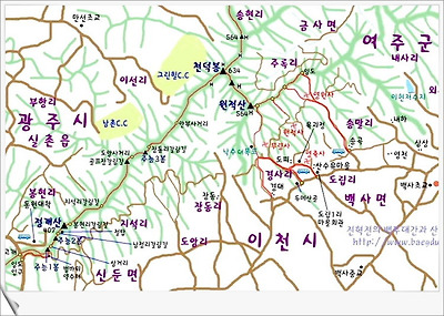 원적산은 이천시 백사면, 여주시 흥천면, 경기 광주의 곤지암읍과 경계를 이루고 있는 산으로 이천에서