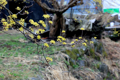 마을 주변에 있는 산수유의 노란 꽃잎을 바라보면서..
