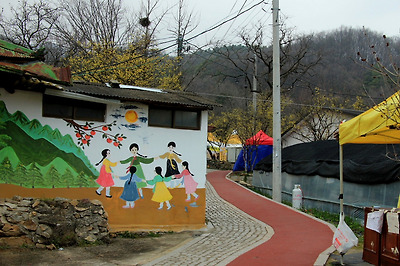 마를 담벼락에는 정겨운 그림이 그려져 있다.