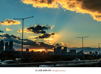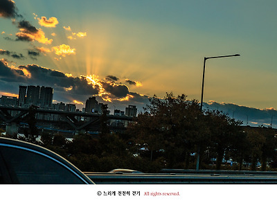 유난히 구름이 많았던 날 서서히 해가 지면서 잠시 잠깐 멋진 풍경이 보입니다.