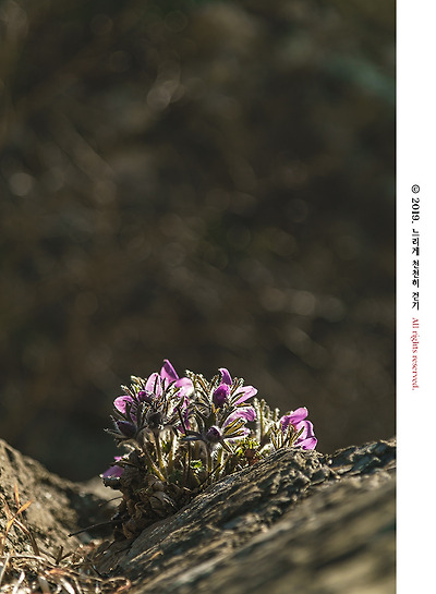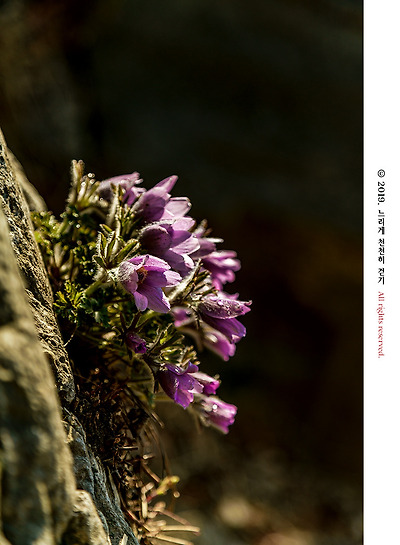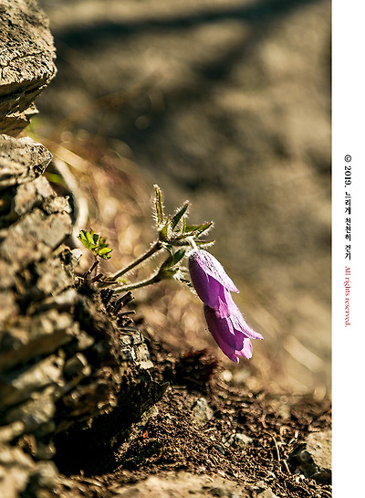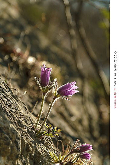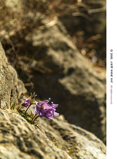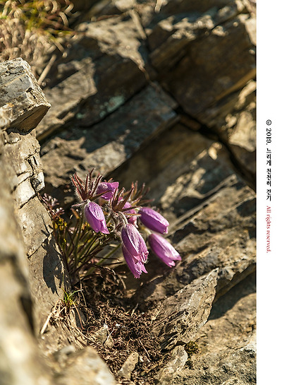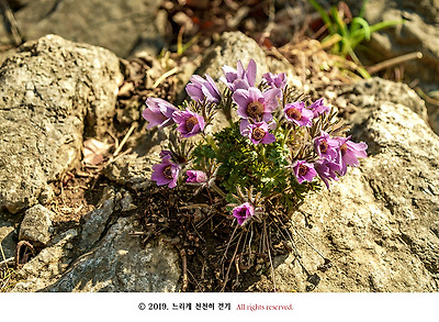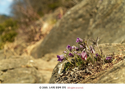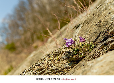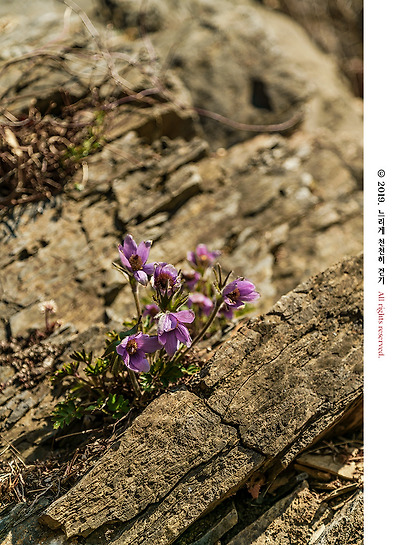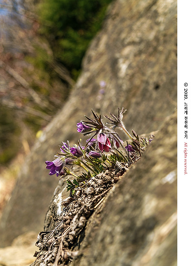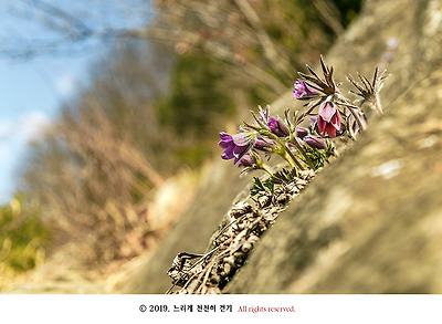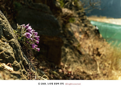 실제 동강할미꽃이 피어있는 문희마을의 낭떠러지 절벽 사이에 피어있어서