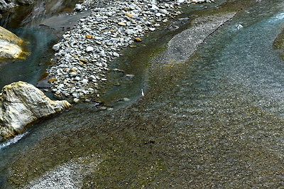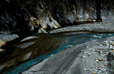 침식작용에 의하여 대리석과 화강암의 산이 강의 흐름을 따라 깎여져