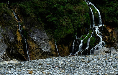 장춘사에서 흐르는 폭포의 물은 마치 타이루거 협곡 희생자들의