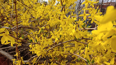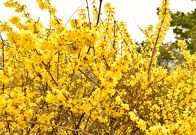 아름답게 피는 개나리 꽃길