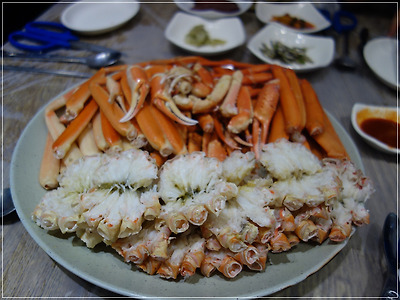 선장집에서 직접 쪄낸 대게가 훨~ 맛이 좋았다.