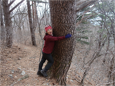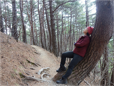 좀 더 올라서자 서서히 붉은색을 띤 황장목으로 바뀐다.