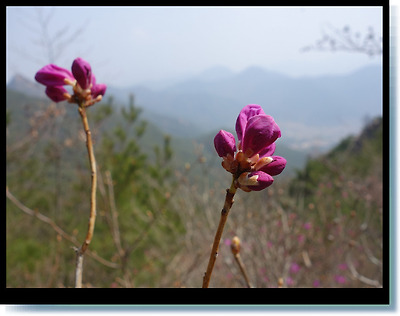 완만한 경사의 육산엔 진달래가 절정이다.