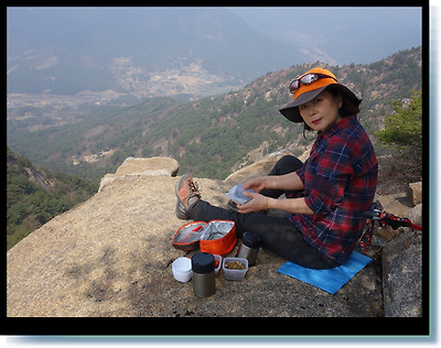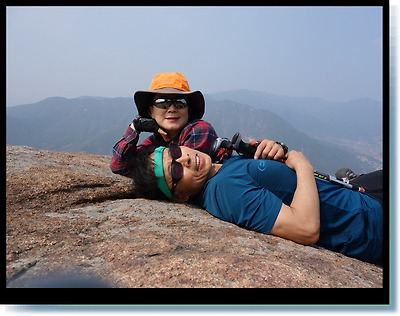 조망이 확보된 넓직한 암반을 찾아든 우리부부는