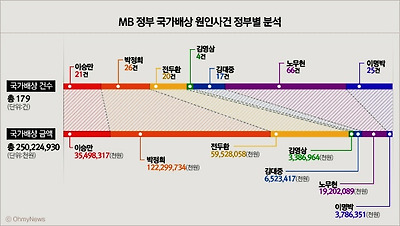 <오마이뉴스>는 2012년 대선 직전에 이명박 정부 5년 동안 지급된 '2008년 이후 국가배상지급 현황'(법무부) 자료를 입수해 국가배상금 총액(2502억2493만 원)을 불법행위의 발생 원인(原因) 정부별로 분석해 보도한 바 있다. 보안사, 대공경찰 등 정보수사기관과 국방부 등 모든 국가기관의 불법행위로 인한 배상총액을 집계한 이 법무부 자료를 분석한 결과 ▲박정희 정부 1222억9973만 원(48.9%) ▲전두환 정부 595억2805만 원(23.8%) ▲이승만 정부 354억9831만 원(14.2%) 순이었다. 이 세 정부에서 발생한 국가의 불법행위로 인한 손해배상액은 총액의 86.9%에 달했다.