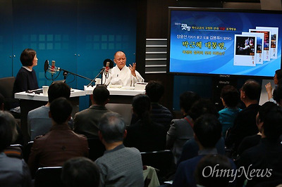 ▲ 20일 오후 서울 상암동 <오마이뉴스> 대회의실에서 도올 김용옥 교수가 출연한 가운데 '<장윤선의 팟짱>