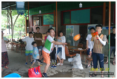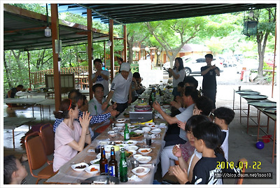 올해는 특별나게 몸 보양식으로 염소코스요리(육회, 내장수육, 갈비찜, 불고기, 뼈탕)로 기력을 충전하고 계곡 물놀이와 각종 오락게임(훌라후프 통과하기, 신발던지기, 엎고달려 몸으로 풍선 터트리기, ox퀴즈, 물풍선 던지기)도 즐기고 노래한마당 까지 식을줄 모르는 열기로 하루가 너무 빨리 지나가 버렸네요