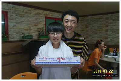 ▲ 강렬한 눈빛 준혁, 이모부와 함께~~ 쌀 한포대 당첨 ㅎㅎ