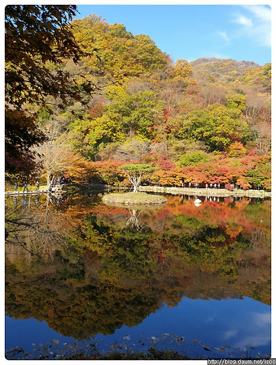 ▲ 오색단풍과 파란하늘이 비치는 반영 볼만합니다