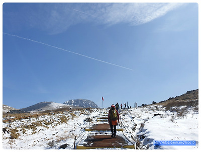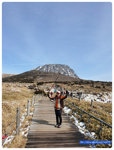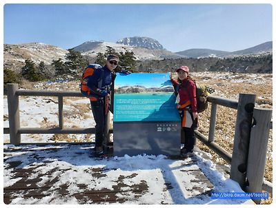 겨울 답지 않게 포근한 날씨, 첫날은 수많은 오름중에 가장 인기가 있고 한라산 남벽을 조망할수 있는 윗세오름길은 전날 내린 새하얀 눈구경도 살짝하고 100미터 마다 표지석을 찾아 인증샷을해가며 즐기다보니 어느새 만세동산을 거쳐 윗세오름에 오르고 확트인 조망과 좀처럼 보여주지 않는다는 백록담 남벽이 너무나 선명하고 웅장하게 나타나 우릴 반겨줘서 멋진구경의 행운을 얻었답니다