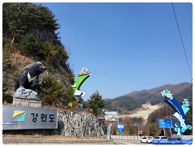 ▲ 광덕고개에 강원도 상징물인 크다란 곰과 조형물이 우뚝서 있습니다