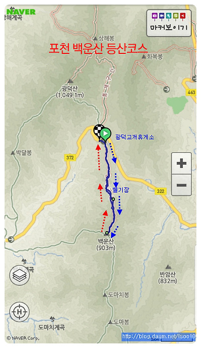 - 백운산 : 광덕고개 쉼터~헬기장~백운산 정상~ 역순 원점회귀