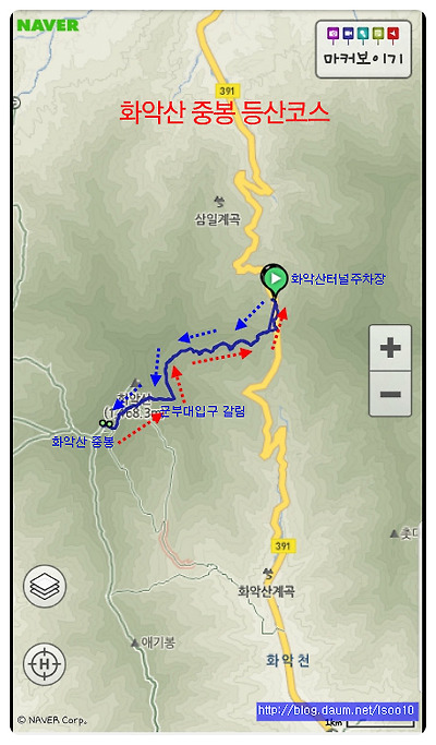 - 화악산 : 화악터널 주차장~군부대갈림길~화악산중봉~역순 원점회귀