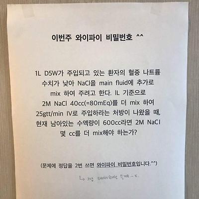 한 간호대학의 와이파이 비밀번호입니다. 와이파이의 비밀번호를 알기 위해서는 위와 같은 문제를 풀어야만 합니다.