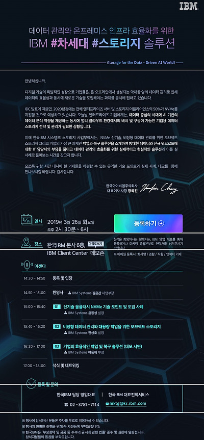 데이터 관리와 온프레미스 인프라 효율화를 위한 IBM #차세대 #스토리지 솔루션 세미나 등록하기
