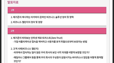 3월 21일에 진행된 "MEGAZONE WEBINAR - 비즈니스 챌린지를 해결하는 Akamai 3·6·9 Solution: EAA, ETP"에 참석해주신 고객님들께 진심으로 감사의 말씀을 드립니다.