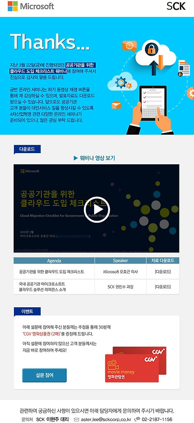 지난 3월 22일(금)에 진행되었던 공공기관을 위한 클라우드 도입 체크리스트 웨비나에 참여해 주셔서 진심으로 감사의 말씀 드립니다.
