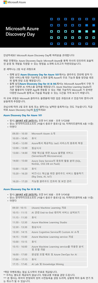 안녕하세요? Microsoft Azure Discovery Day에 여러분을 초대합니다!
