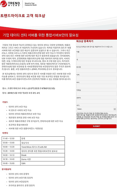 트렌드마이크로 고객 워크샵 - 기업 데이터센터 서버를 위한 통합서버보안의 필요성 등록하기