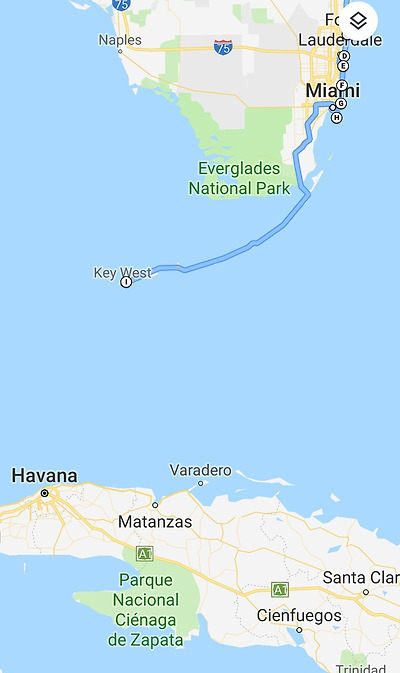 본토의 끝에서 부터 키웨스트 까지는 총 113마일(182 킬로)로