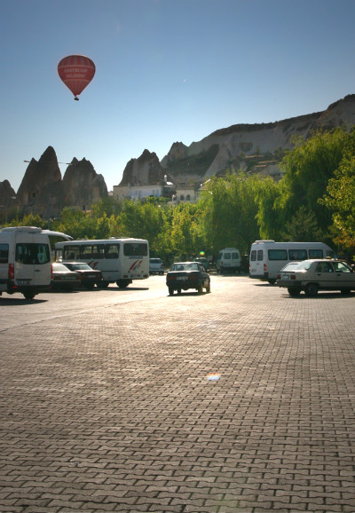 세르비스에서 내리자 무엇보다 먼저 눈에 들어온 것은 하늘을 날고 있는 빨간색 열기구.