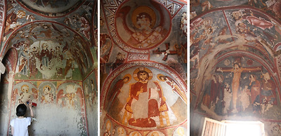성화파괴운동 이후 11~12세기에 그려진 성화들로 이전에 그려진 성화 위에 덧칠해서 그린 것이란다.
