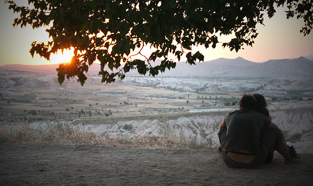 일몰을 감상하는 연인들