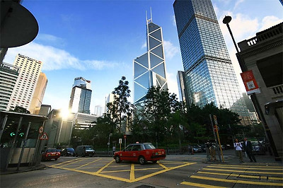 중국은행(차이나 뱅크)-총 70층 높이로 세게적인 중국인 건축가 메이위밍이 1982년에 설계하여 완성한 건물이다. 건물 외관이 모두 마름모형이며