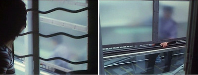 스컬레이터를 타고 출근을 하고 여자 주인공 왕페이가 아파트 창문에서 량차오웨이를 엿보는 장면에도 등장한다.