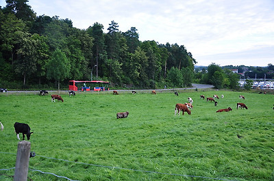 빨간 버스와 초록 풀밭의 어우러짐도 상큼하다.