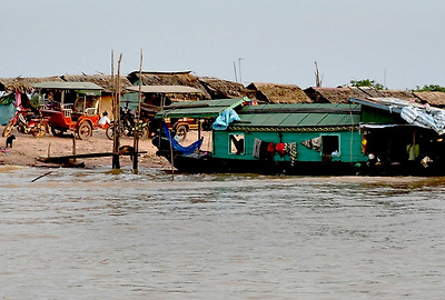 공항에서 호텔까지 오는 동안엔 모양새 좋은 호텔 건물들이 주를 이루고 있어, 이 나라 대부분의 사람들이 처한 형편이 그리 좋지 못하다는 걸 크게 실감하지 못했는데, 톤레삽 호수로 가면서 보니 처음에 예상했던대로 사람들의 사는 형편이 그리 좋아 보이지 않는다. 그럼에도 불구하고 언뜻 언뜻 보이는 사람들의 표정이 어두워 보이지 않아서 그런지 인도에서 느꼈던 그런 가슴 아픔은 잘 느껴지지 않았다. 물론 이것은 너무나도 개인적인 감정이라 일반화 시킬 수는 없는 생각이다. 내가 기억하는 인도의 인상은 처음 접했던 상황이니만큼 충격적이었고 더 강렬하게 각인된 것일 수도 있겠기에.