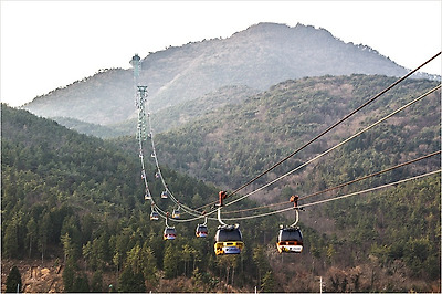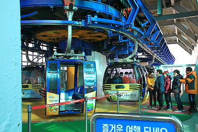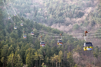 올라가고 내려오는 케이블카의 행렬이 계속 이어집니다.