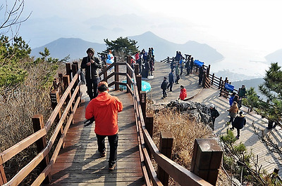 한려수도의 보석 같은 섬들과 통영의 나폴리라 불리는 통영항, 그리고 한산대첩지 등을 한 눈에 조망할 수 있어 이렇게도 많은 사람들이