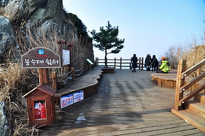 정상에 오르기 전 봉수대 쉼터에서도 잠시 머물러 봅니다.