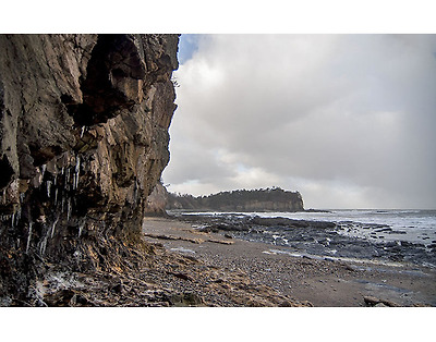 절벽에는 고드름이 주렁주렁 달려 있고...