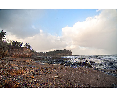 붉은색을 띤 바위와 절벽로 해안이 이루어져 있고 석양 무렵 햇빛을 받아 바위가 물들 때가 가장 장관