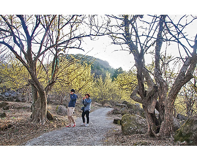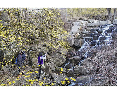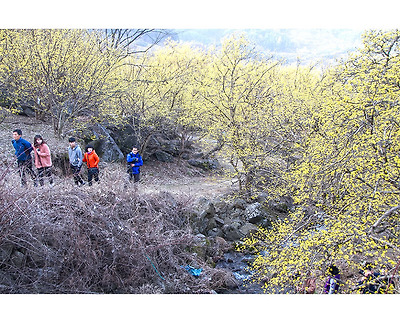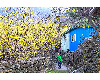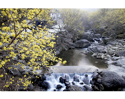 계곡과 어우러진 산수유의 노란빛을 따라 계곡을 거슬러 올라 봅니다.