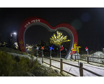 저녁을 먹은 후, 해 저물기  전에 보아 두었던 산수유 사랑공원으로 향하다가 사랑교라는 다리에 이르러 발걸음을 멈추