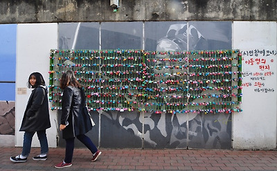 담벼락 한 부분에는 이렇게 시민들도 함께 할 수 있는 자리가 마련되어 있어요.