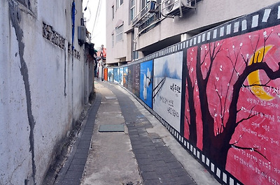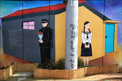 사랑했지만 노래 가사가 적혀 있는 벽화예요.